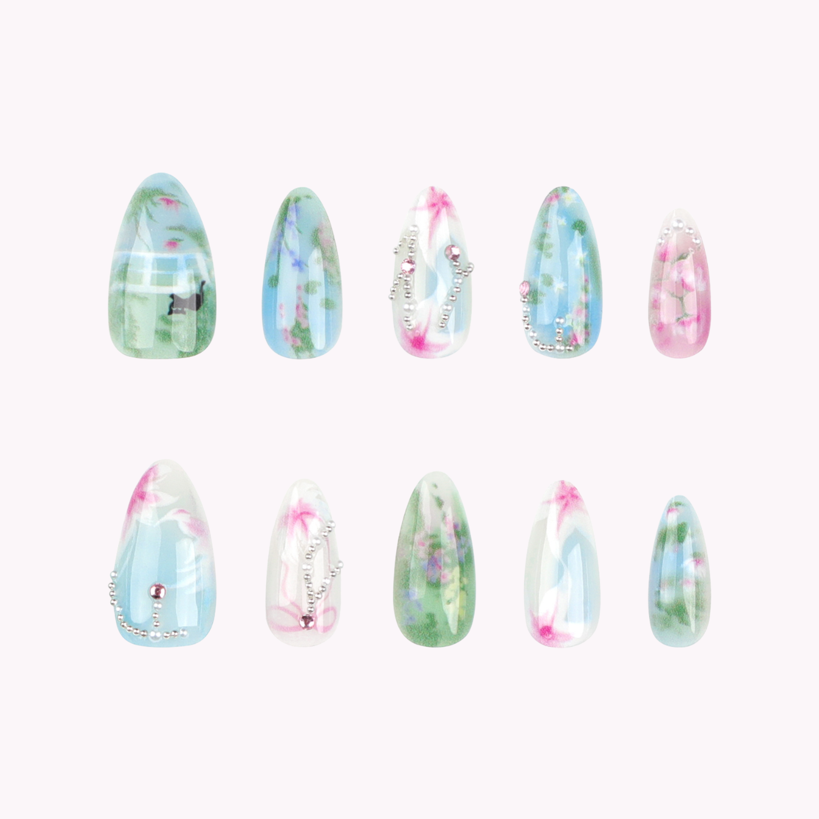 Match each press-on to your natural nail. It should fit edge-to-edge without touching the cuticle or skin.