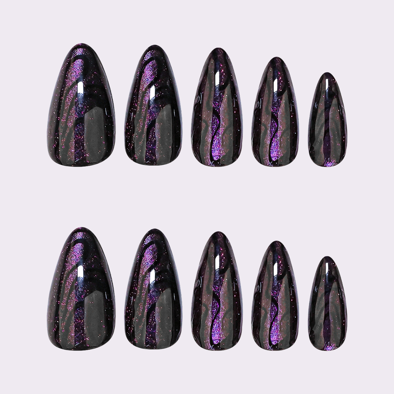 Match each press-on to your natural nail. It should fit edge-to-edge without touching the cuticle or skin.