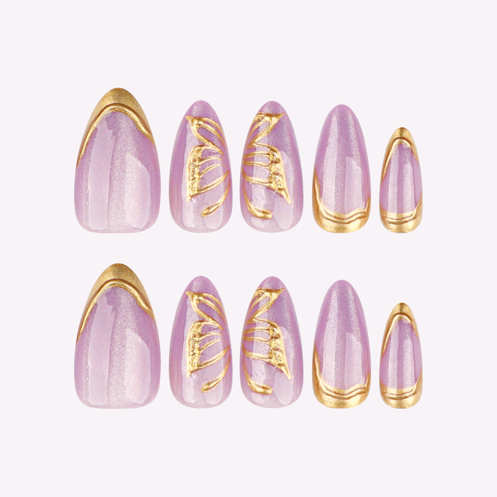 Match each press-on to your natural nail. It should fit edge-to-edge without touching the cuticle or skin.